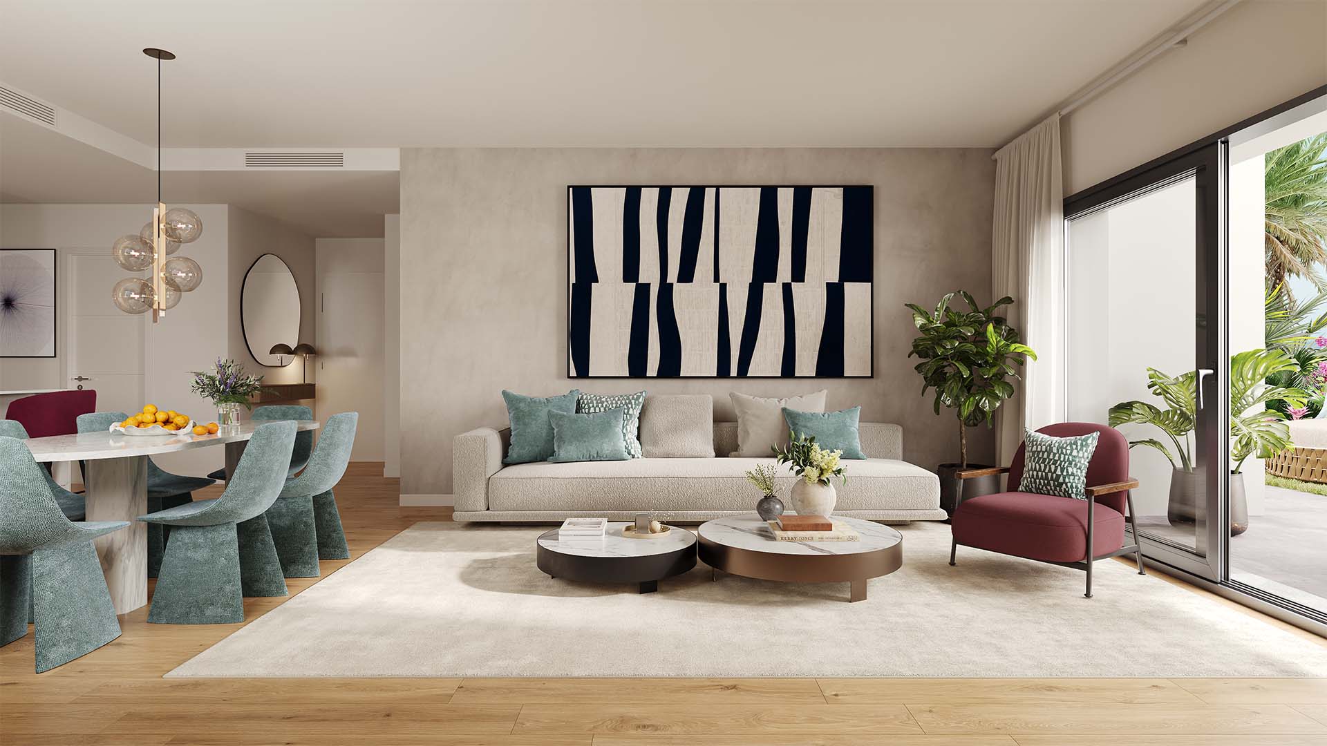 Inwestycja Alura Living obejmuje 99 apartamentów i penthouse’ów z 2 lub 3 sypialniami, zaprojektowanych z myślą o komforcie, świetle i przestrzeni. Każde mieszkanie wyróżnia się dużymi tarasami, otwartymi przestrzeniami dziennymi i nowoczesnym wykończeniem klasy premium. Panoramiczne okna zapewniają naturalne oświetlenie i spektakularne widoki na morze lub góry.